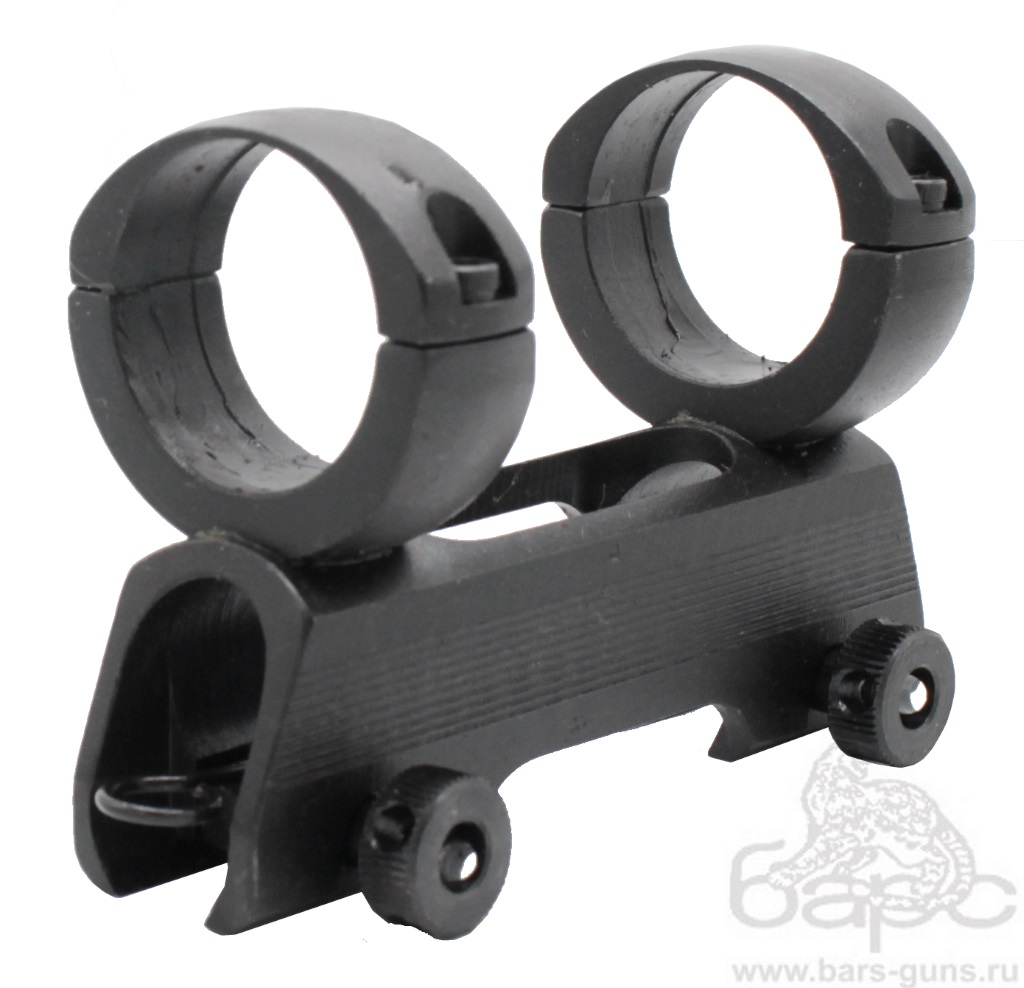 Конструкция кронштейна позволяет пользоваться оптическим и открытым прицелом, легко снимать и вновь устанавливать на оружие