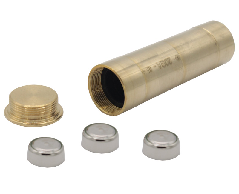 Установите три элемнта питания в корпус лазерного патрона плоской стороной (положительный полюс "+") к крышке батареи.