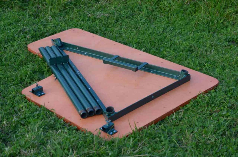 Стол легко собирается и разбирается благодаря резьбовому соединению ножек. Для удобства переноски ножки крепятся к столу, а индивидуальная нумерация труб и посадочных мест упрощает сборку. Скошенные концы ножек обеспечивают надежную фиксацию даже на мерзлом грунте.