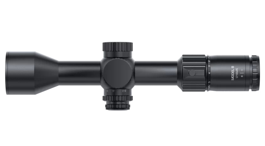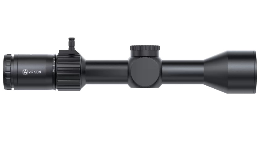 Arkon Model B 1,7-10x45 оснащен барабанами ввода поправок закрытого типа с разметкой в MRAD. За один клик положение прицельной сетки сместится на 0,1 MRAD. Диапазон ввода поправок на дальность и ветер составляет 29,4 MIL.