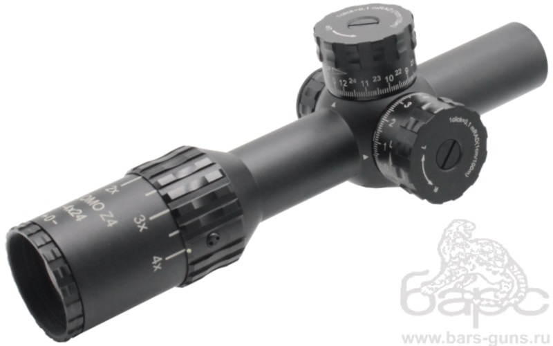 Широкоугольный окуляр с видимым угловым полем зрения 24° обеспечивает большое и объемное поле зрения прицелов, помогая стрелку в поиске и выборе цели.