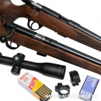Это магазинный карабин с охотничьим стволом и механическим прицелом, а также вариант «варминт», без механического прицела. Оба образца под патрон .22 LR.